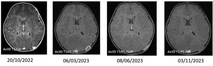 Conclusion: This case highlights the diagnostic and management challenges associated with pediatric EH involving the head, including intracranial involvement. The patient’s unique presentation, age, and lesion involution expand the understanding of EH beyond its typical manifestation.